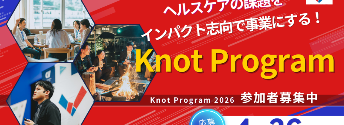 【募集】インパクト起業家育成プログラム「Knot Program 2026」参加メンバー募集開始!出資機会の提供あり!” 医療・介護・福祉など、ヘルスケアの現場にある課題を、本気で変えたい ”そんな志をもつあなたの挑戦を全力で応援する実践型のインパクト起業家育成プログラム「Knot Program」が、202…